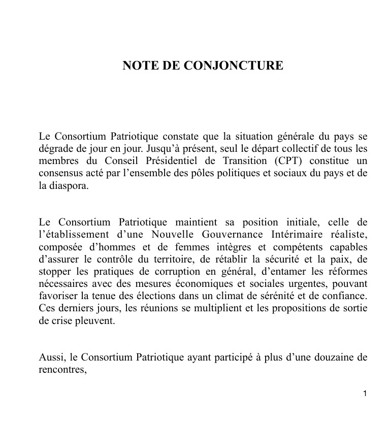 UNE COALITION POLITIQUE ET CIVILE DÉNONCE L’ÉCHEC DU CONSEIL PRÉSIDENTIEL DE TRANSITION ET PROPOSE UNE ALTERNATIVE