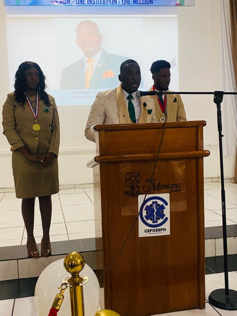 Présent à la cérémonie, l’ingénieur Claude Prépetit a remercié le CEFOSEPH pour cet hommage, soulignant l’importance cruciale de former des professionnels paramédicaux compétents dans un pays exposé à de nombreux risques naturels.