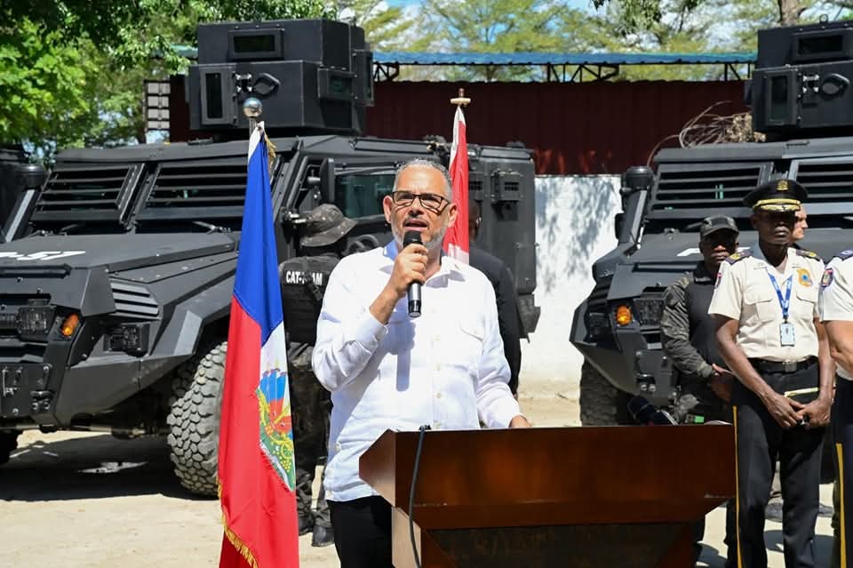 La cérémonie s’est tenue à la Direction générale de la PNH, à Clercine, dans un climat marqué par la persistance des violences armées. Le lot comprend notamment trois blindés à chaînes, conçus pour évoluer sur des terrains difficiles et intervenir lors d’opérations contre des groupes lourdement armés.